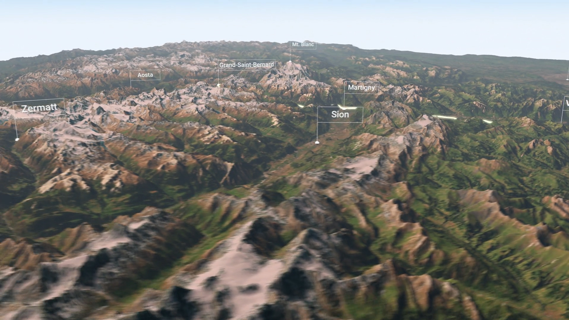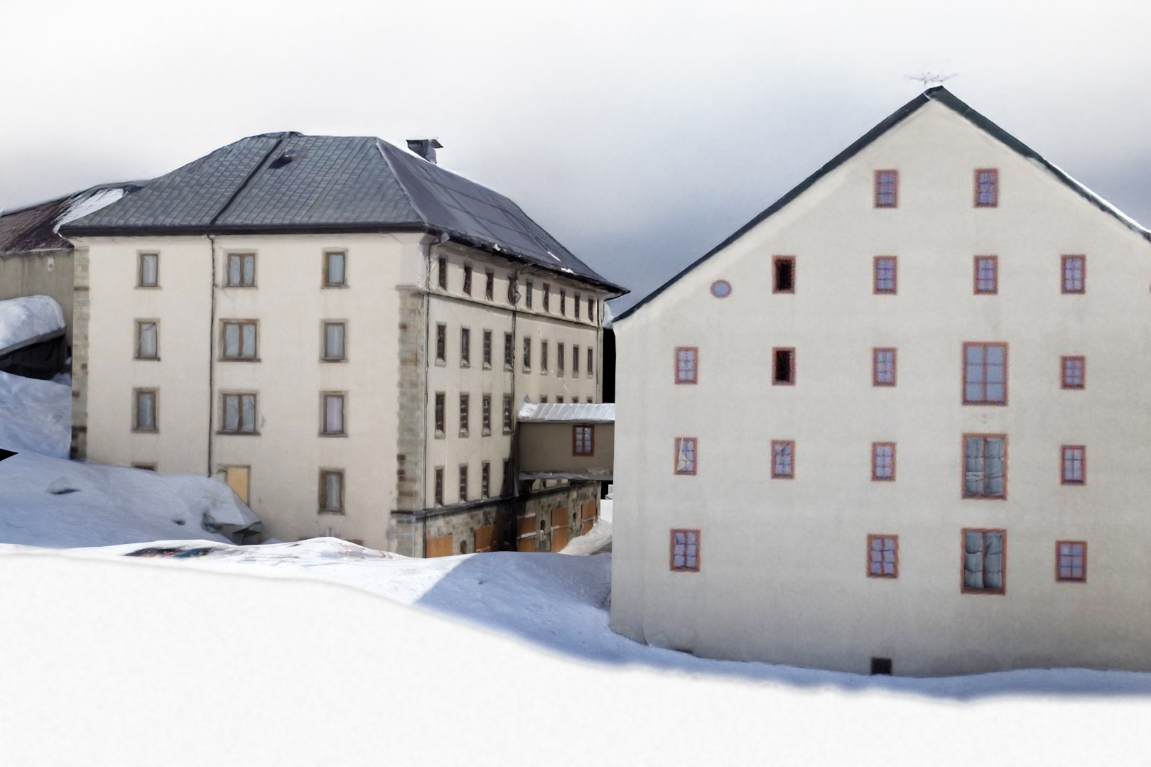 Recherches visuelles et effet de maquettes sur des images de Sion et Martigny