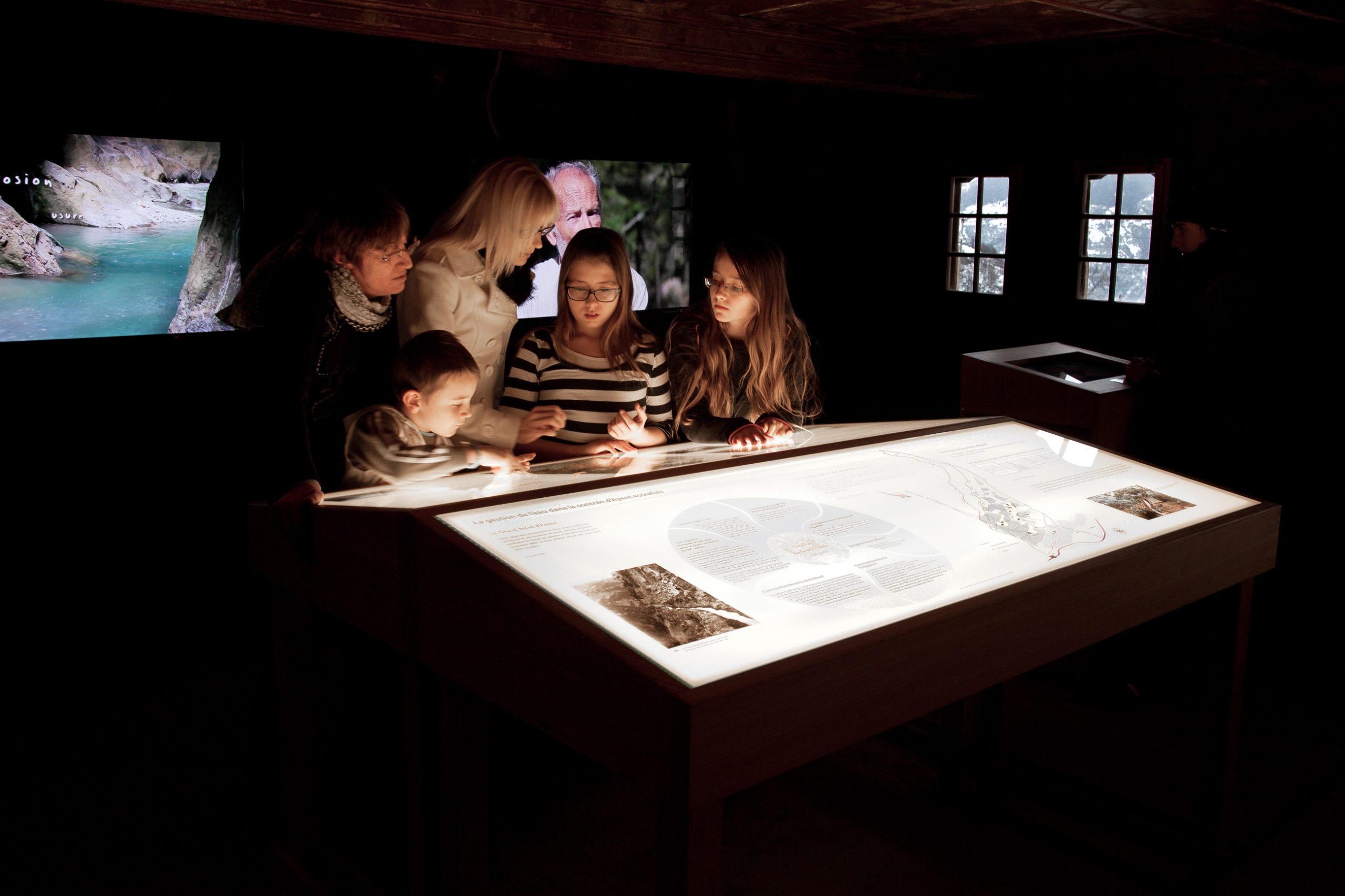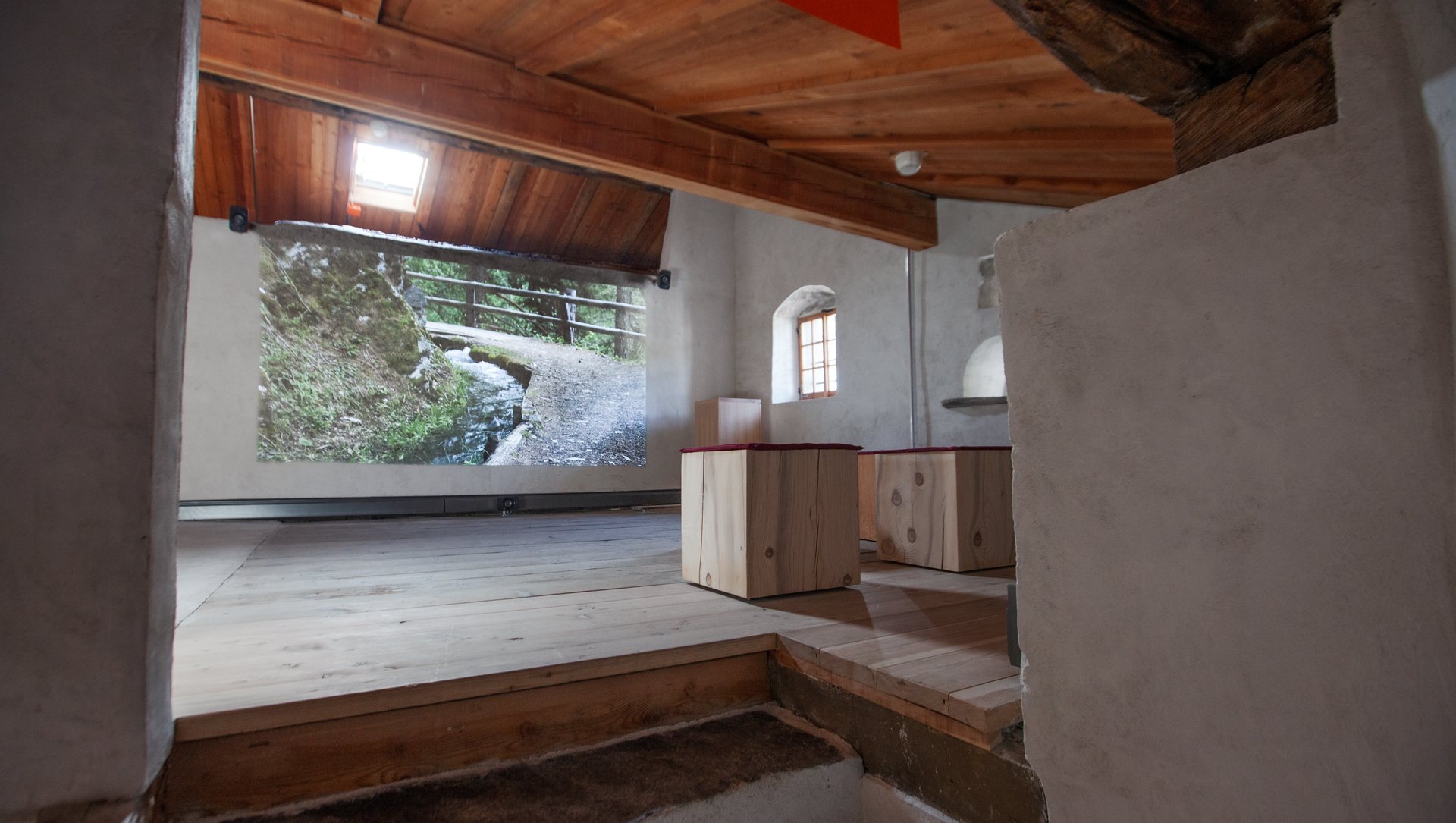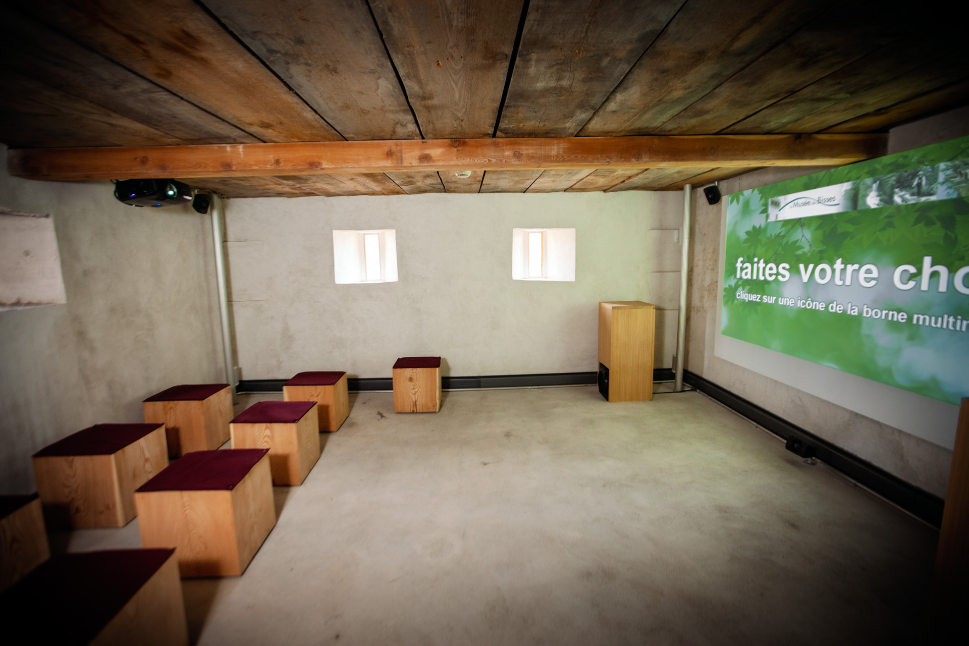 Dispositifs de projections et de diffustions de films et de paysages sonores dans plusieurs salles du musée des bisses