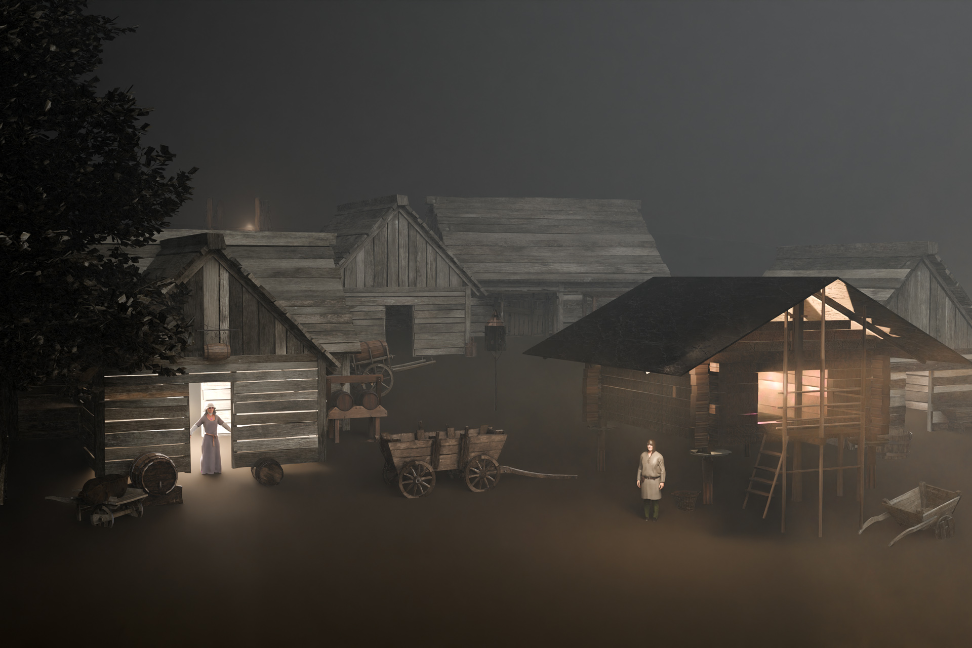- Création d’une borne interactive 4K représentant les phases de construction de l’hospice en 3D